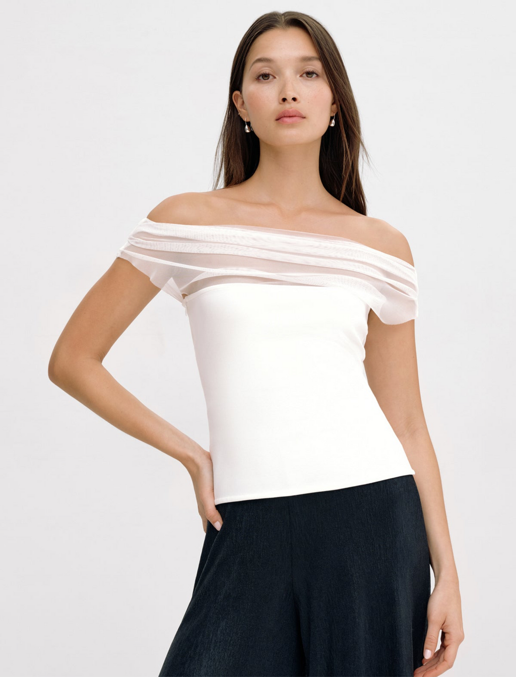 “Love that this top can be worn over the shoulders or off. Went perfect with the White Georgia pants for an all white party. Great material and loved the style.”
