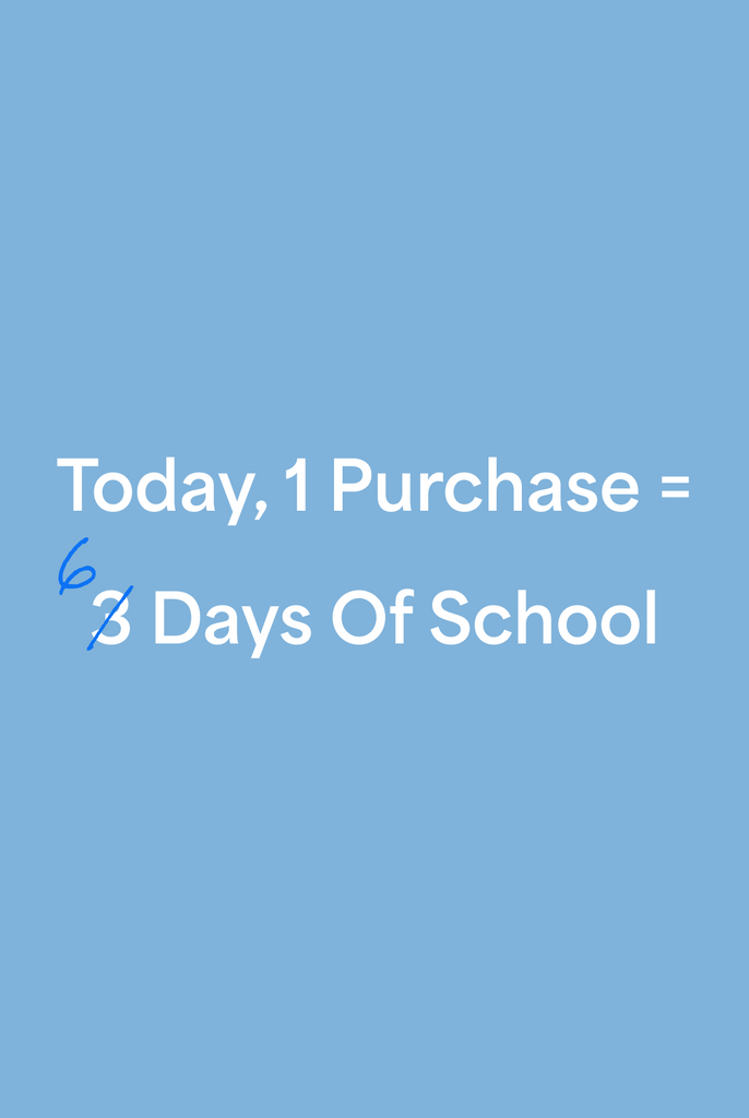 Even better, on every October 11th, every International Day of the Girl, it's a Marcella "DOUBLE School Days" Day, meaning 6 (not 3) days of school fees, books, uniforms, menstrual pads and more supported with every Marcella order. Or, put another way, for every 33 orders placed today at Marcella, another girl will continue her education for an entire school year.