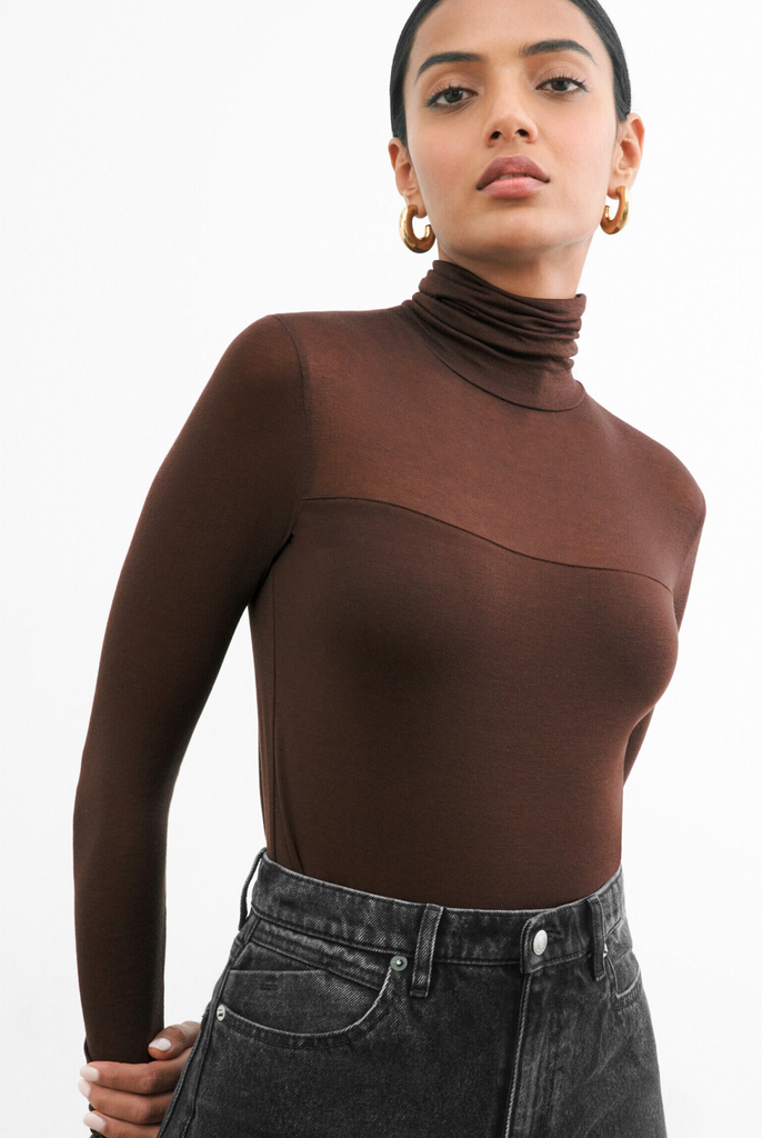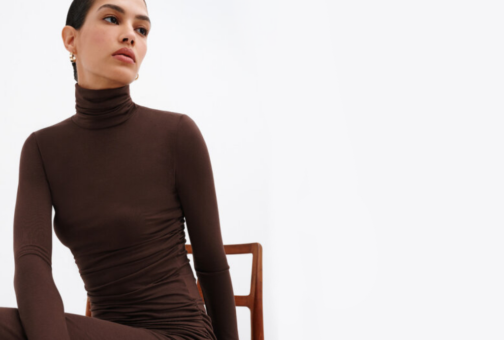 Another design that will take root in your closet? The Baxter Mockneck Dress in Espresso – a graceful long-sleeved maxi you’ll have on heavy repeat.