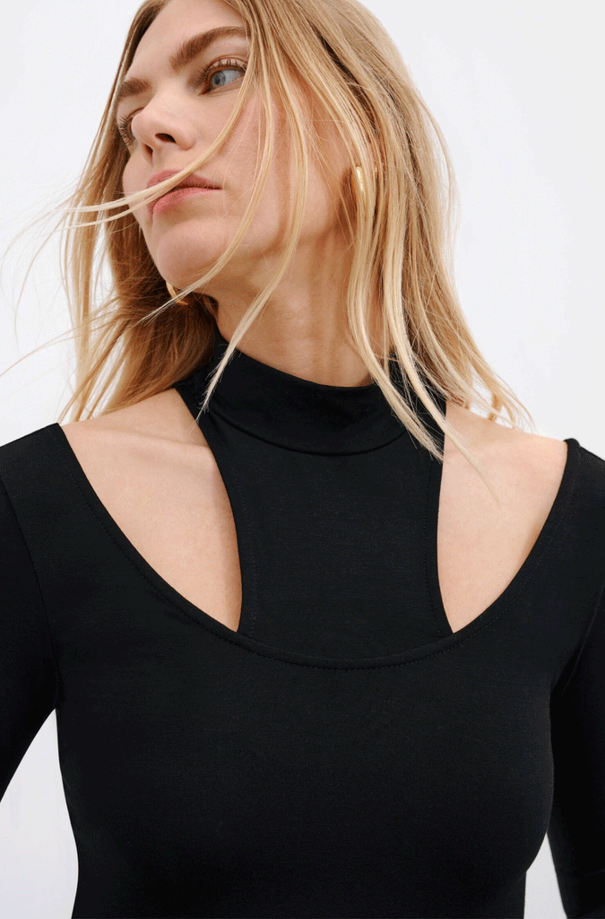 Setting the foundation for a memorable look begins with a statement-making base like the Arima Bodysuit. With her innovative construction, featuring a dual neckline that creates compelling cutouts on each shoulder, your every entrance will be an impactful debut of personal style.