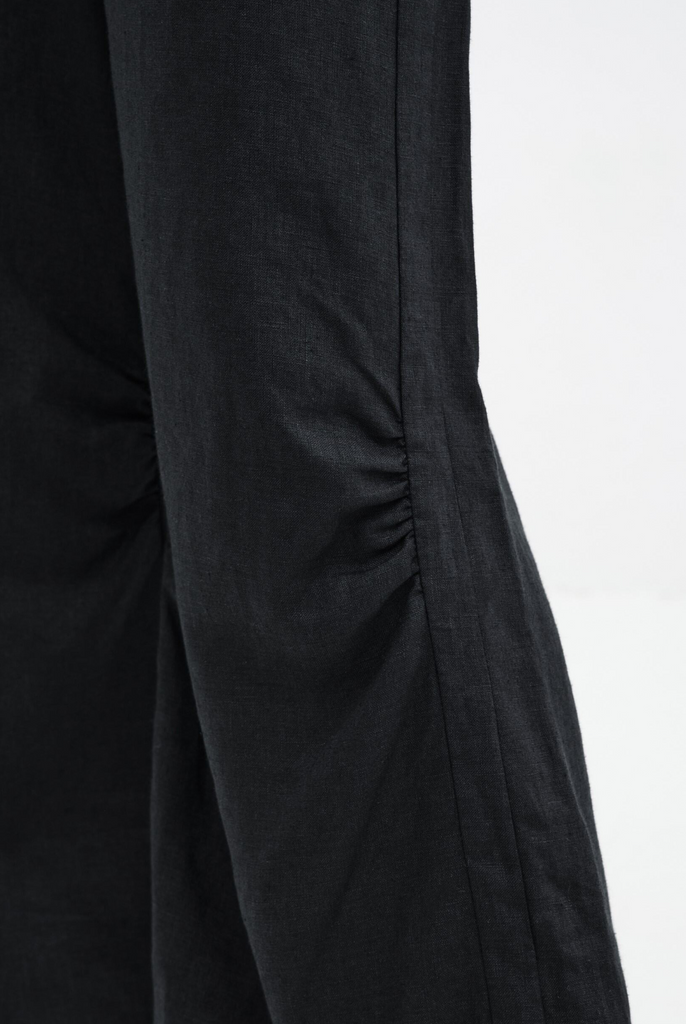 A good pair of linen slacks can really change the mood in a woman's closet. Take our Runa Pants, a sophisticated, high-waist cut with textured edge that feels like a breath of fresh air on your skin. Style Runa with a fitted top to balance her wide-leg volume for casual and cocktail looks alike.