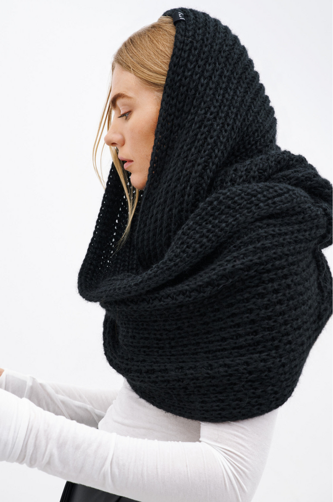 Drama, mystery, and elegance collide when you style the London Scarf as a hood. Not only does the hood artistically frame your face, but it also keeps you more protected from the cold.