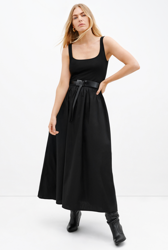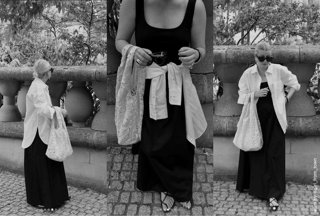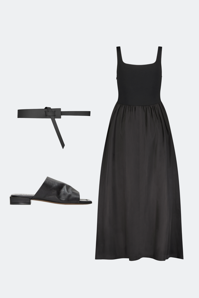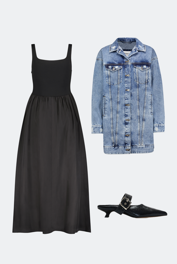 When summer hits, it's all about letting the dress shine solo. No layers required. Pair Clara with minimalist sandals to keep the look effortless and light – flats for casual days, a heel to dress it up. Add a belt if you want to define the waist, or leave it flowing and free. And if you prefer your summer looks with a bit more coverage? An edgy mesh bolero lends visual texture while staying soft and breathable through any heat wave.