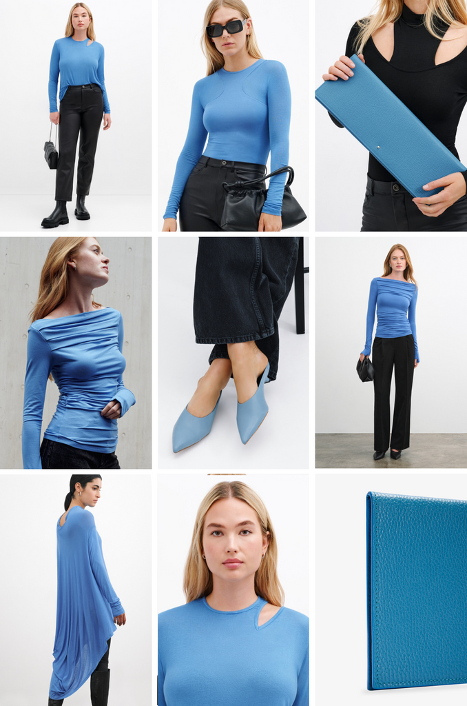 Enter Sky Blue, the striking hue accenting our new FW23 collection. Inspired by the sky’s depth, Sky Blue is a versatile color that saturates any look with sophistication. And, while it’s perfect for any season, we can't help but remark that blue makes a particularly brilliant statement in autumn.