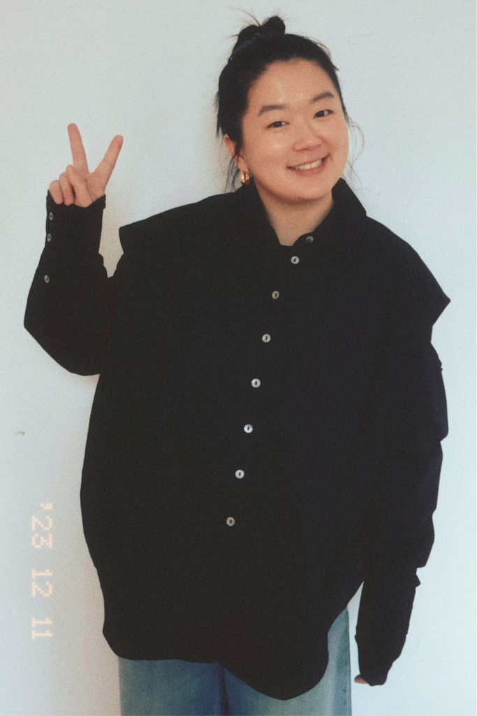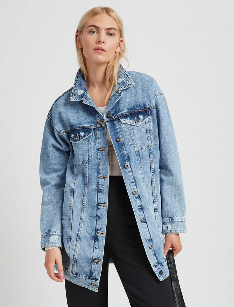 "The one denim jacket I could never live without! The wash is perfectly lived-in, the oversized cut is just right, and the geometric stitching on the back is so cool. Also, the length is unique and flattering—just as cute with loungewear as it is layered over dresses. People are always asking me where I found it!"