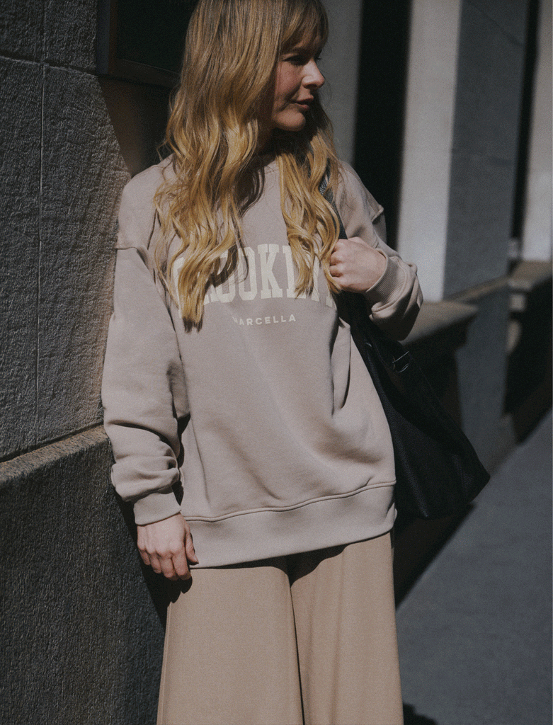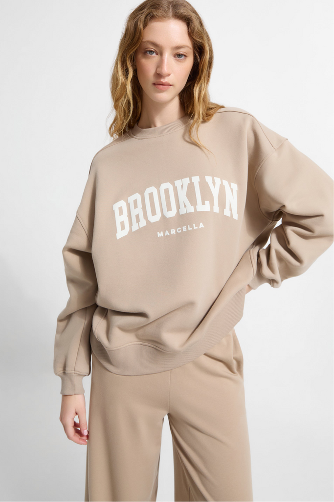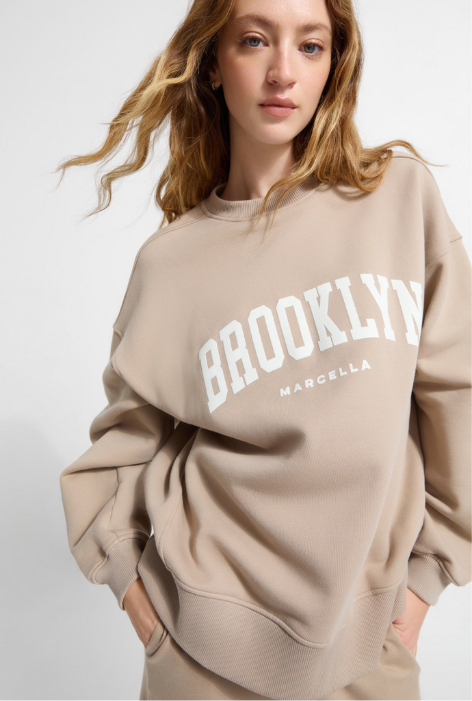 Whatever your neighborhood, you’ll end up living in Brooklyn. This classic long-sleeve crewneck sweatshirt is cut from breathable, midweight European french terry that's irresistibly soft, with ribbed details throughout for textural intrigue. Relaxed and oversized with dropped shoulders, she’s stamped with “Brooklyn” across the front for an instant dose of NYC cool.