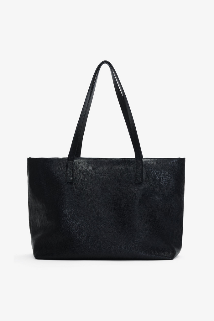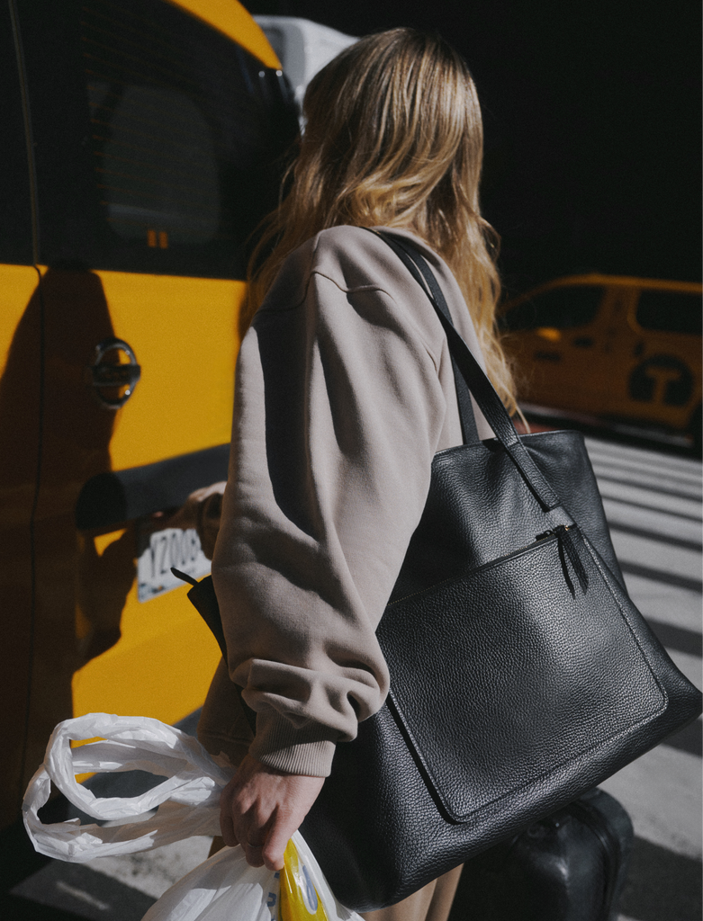 The central piece of our Zoe organization system, the Zoe Utility Tote makes moving through the world ever-easy. A spacious silhouette handcrafted with the rich, durable texture of 100% Italian pebbled leather, Zoe features two top handles and an exterior pocket that safeguards smaller essentials while being able to be slipped over a suitcase handle for seamless travel. She comes with a removable, adjustable crossbody strap and includes inner snaps designed to host a series of Zoe Tote accessories you can add on as you please (shop them separately here).